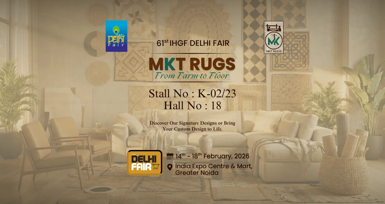 Join MKT Rugs at the 61st IHGF Delhi Fair Spring 2026 in Greater Noida. Discover our latest collections of handcrafted rugs and sustainable home furnishings.